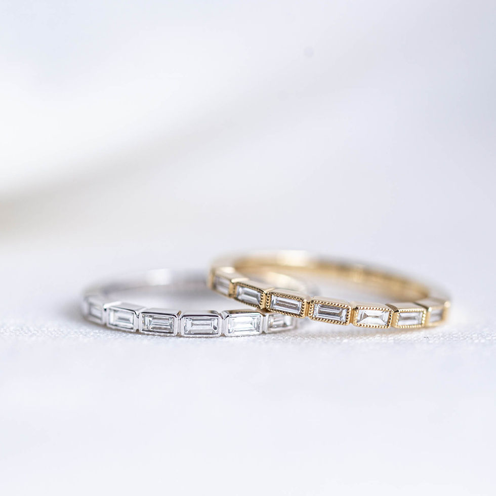 Our timeless designs of men's and women's wedding bands features the finest 14k and 18k solid gold and platinum. Each stunning band is crafted to the highest standards with handcrafted details, fine diamonds, or colorful gemstones.